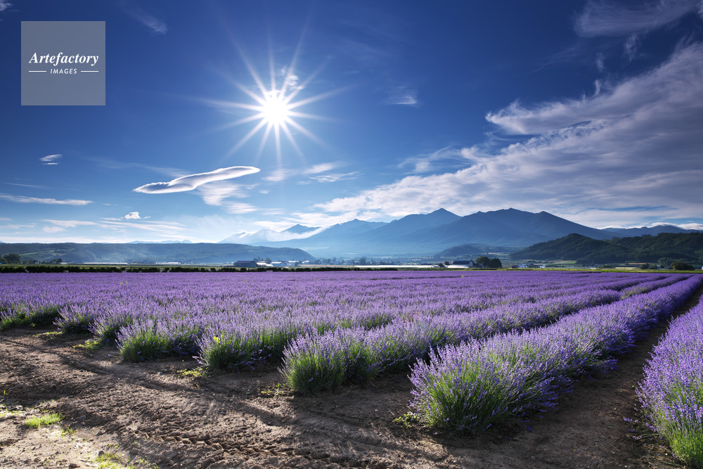 作品タイトル     十勝岳連峰とラベンダー モデルリリース なし