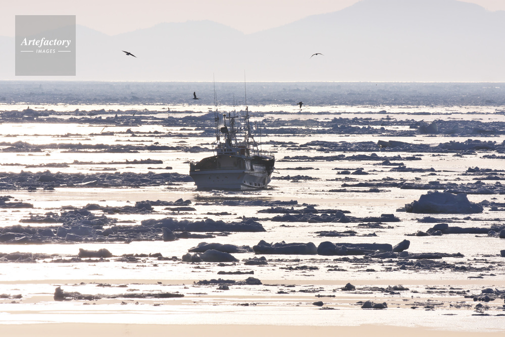 | 作品タイトル | 朝の流氷とスケソウ漁船 | モデルリリース | なし | |
