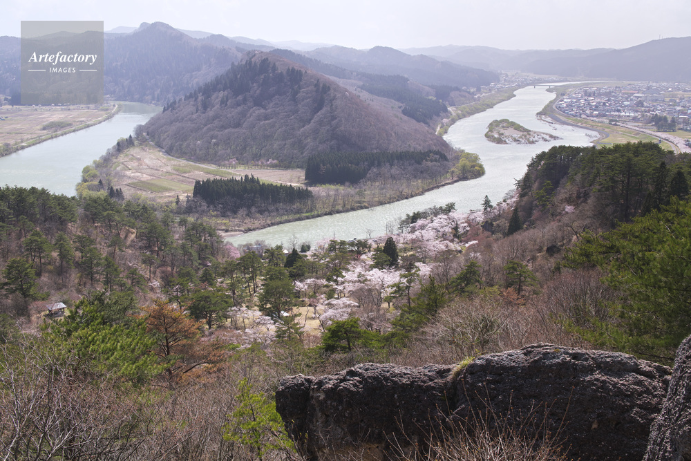| 作品タイトル | きみまち阪の桜と七座山と米代川 | モデルリリース | なし | |