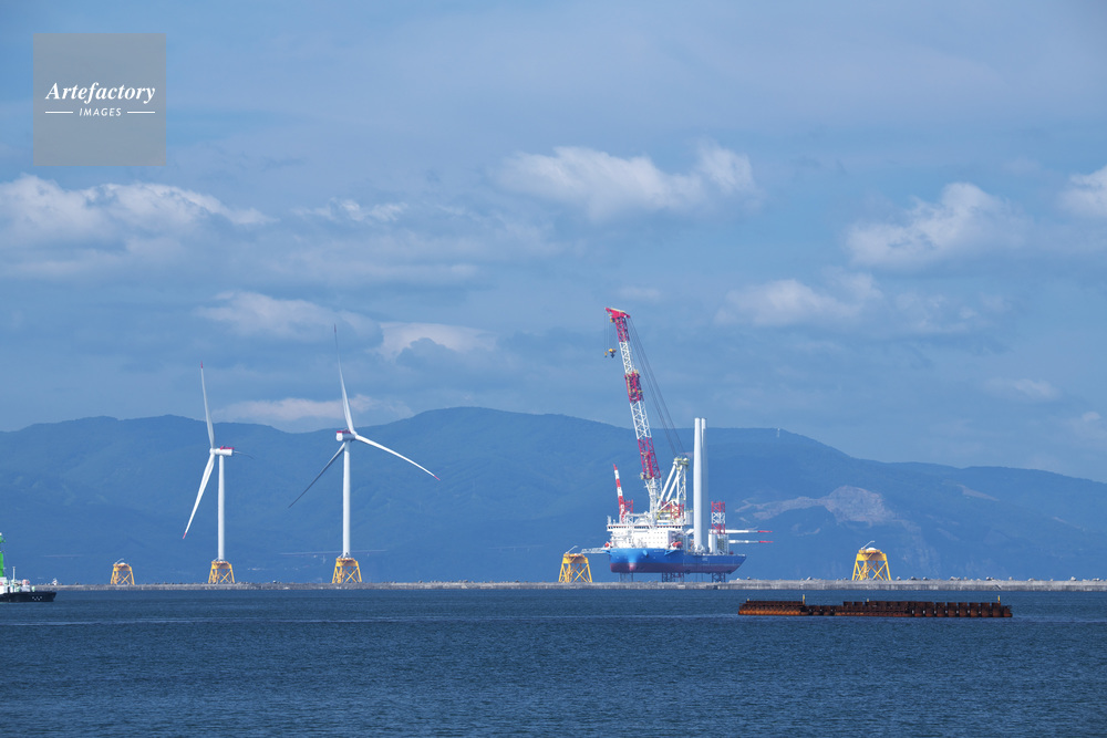 | 作品タイトル | 石狩湾新港沖の船体をジャッキアップした洋上風力発電の設置作業 | モデルリリース | なし | |