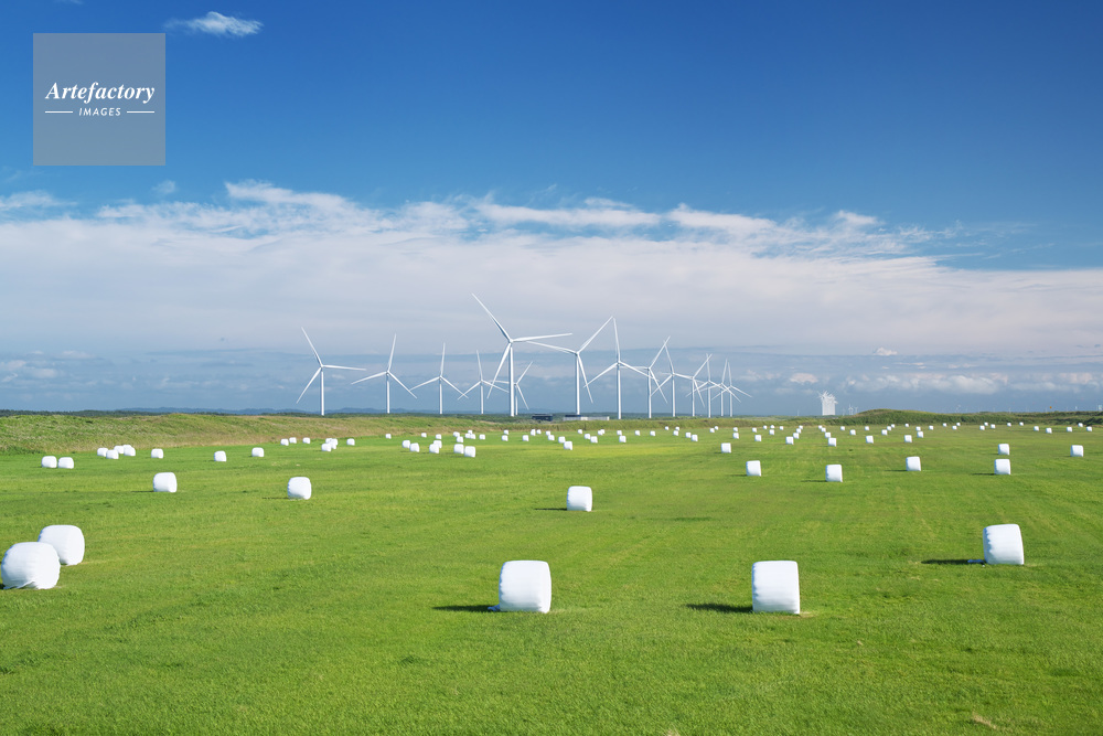 | 作品タイトル | 浜里ウインドファームと牧草ロール | モデルリリース | なし | |
