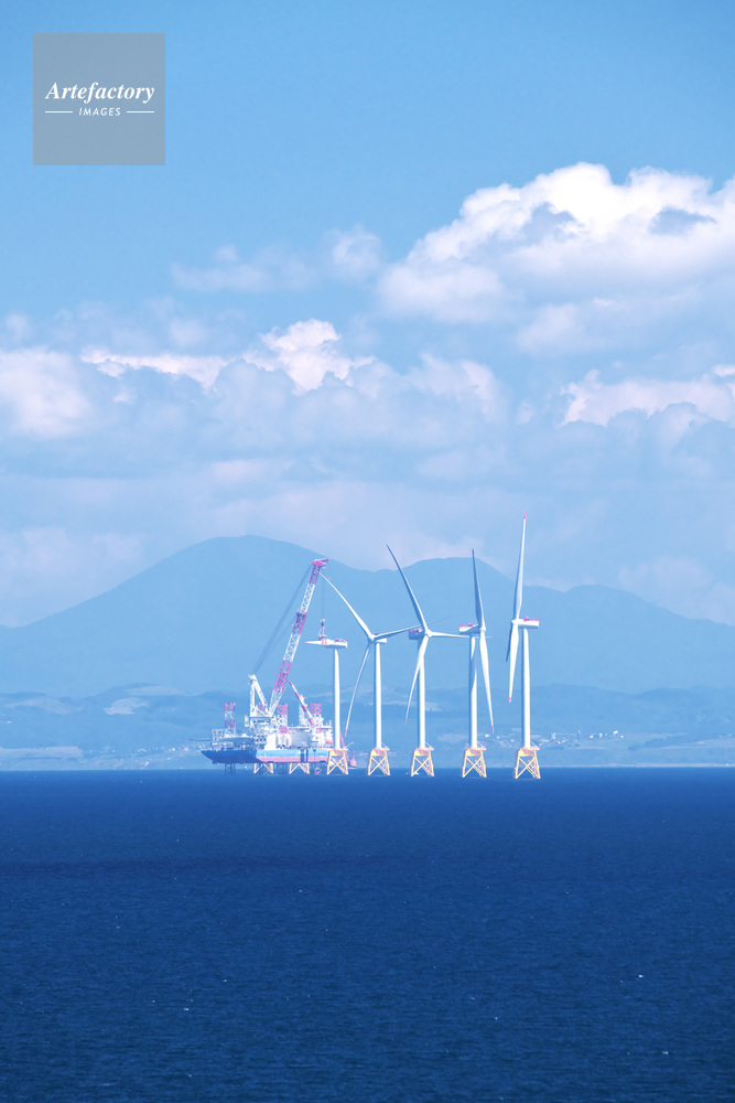 | 作品タイトル | 石狩湾新港沖の洋上風力発電と設置作業船と石狩湾 | モデルリリース | なし | |