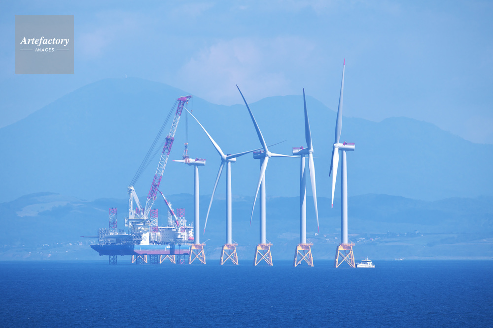 | 作品タイトル | 石狩湾新港沖の洋上風力発電と設置作業船と石狩湾 | モデルリリース | なし | |