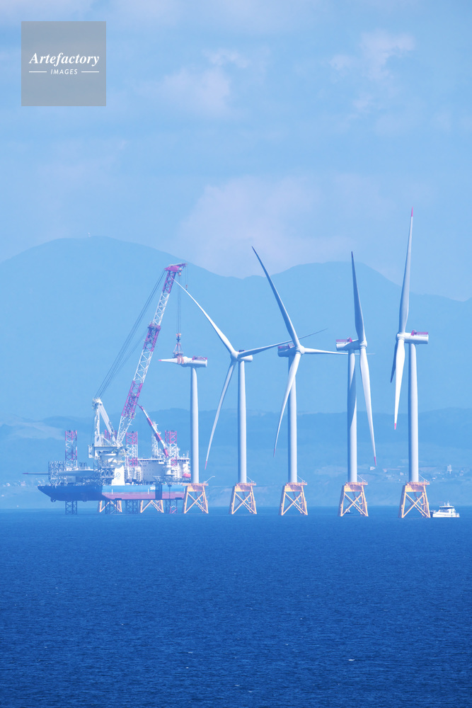 | 作品タイトル | 石狩湾新港沖の洋上風力発電と設置作業船と石狩湾 | モデルリリース | なし | |