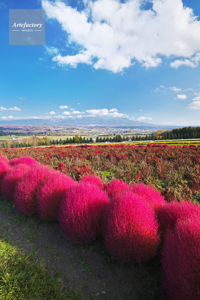 | 作品タイトル | フラワーランドのコキアと十勝岳連峰 | モデルリリース | なし | |