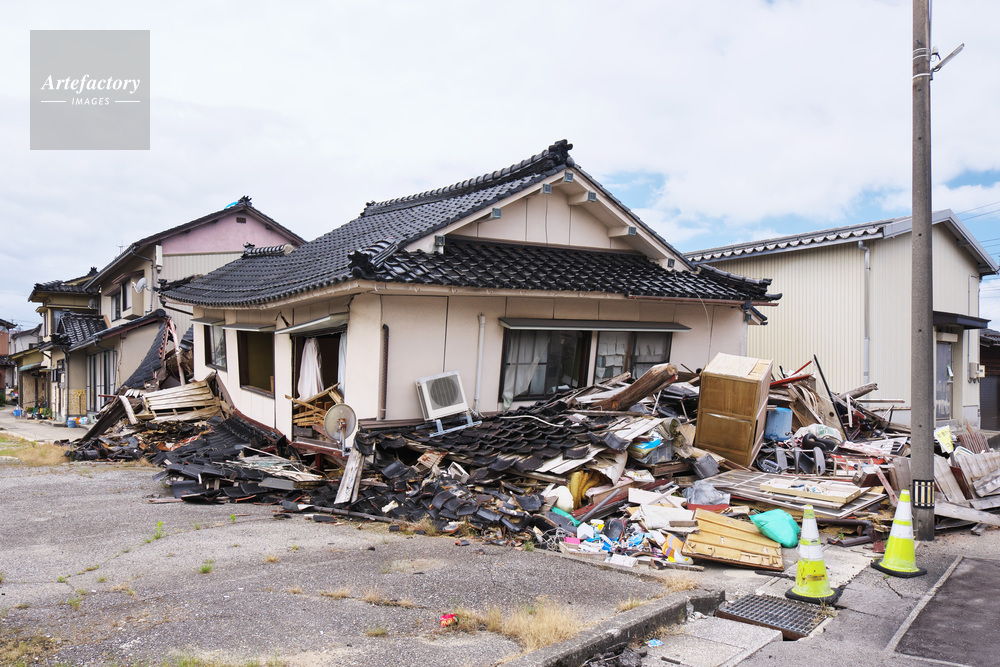 作品タイトル     能登半島地震 倒壊した家屋 モデルリリース なし