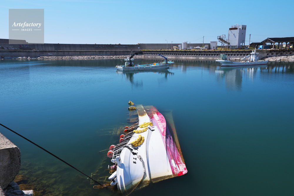 | 作品タイトル | 能登半島地震 鹿磯漁港の沈没した漁船 | モデルリリース | なし | |