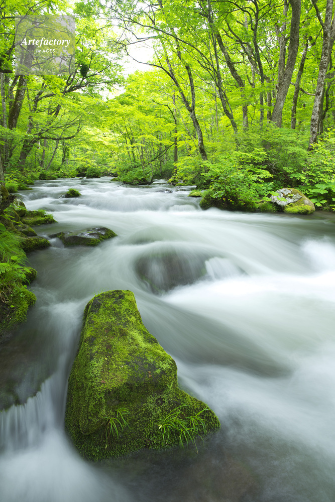 | 作品タイトル | 奥入瀬渓流の新緑 三乱の流れ | モデルリリース | なし | |