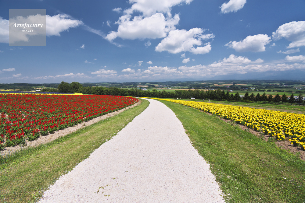 | 作品タイトル | フラワーランド 十勝岳連峰とヘブンロード白い道 | モデルリリース | なし | |