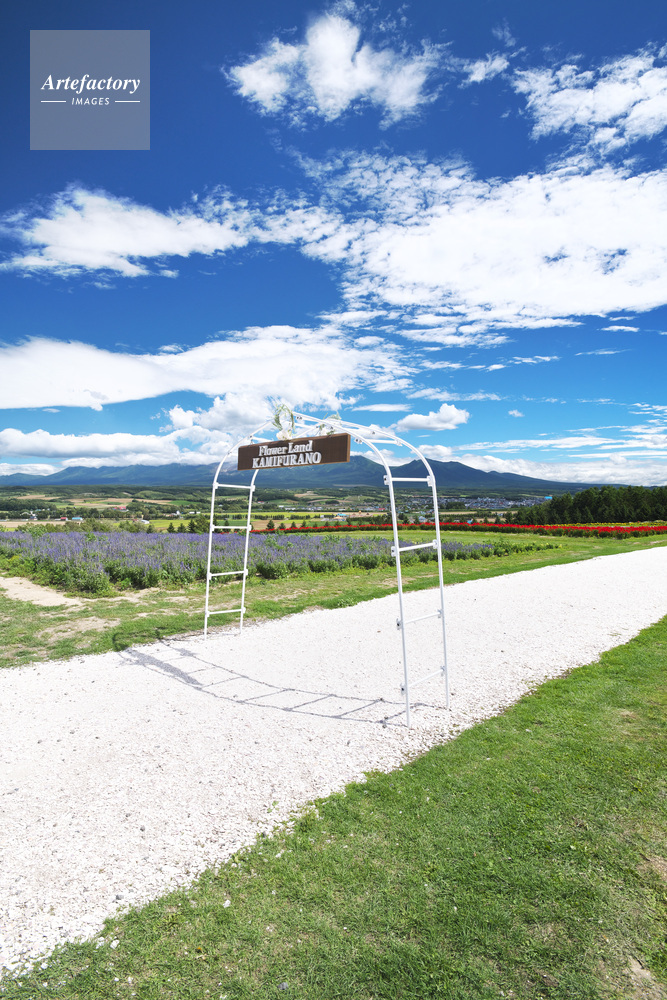 | 作品タイトル | フラワーランド ヘブンロード白い道と十勝岳連峰 | モデルリリース | なし | |
