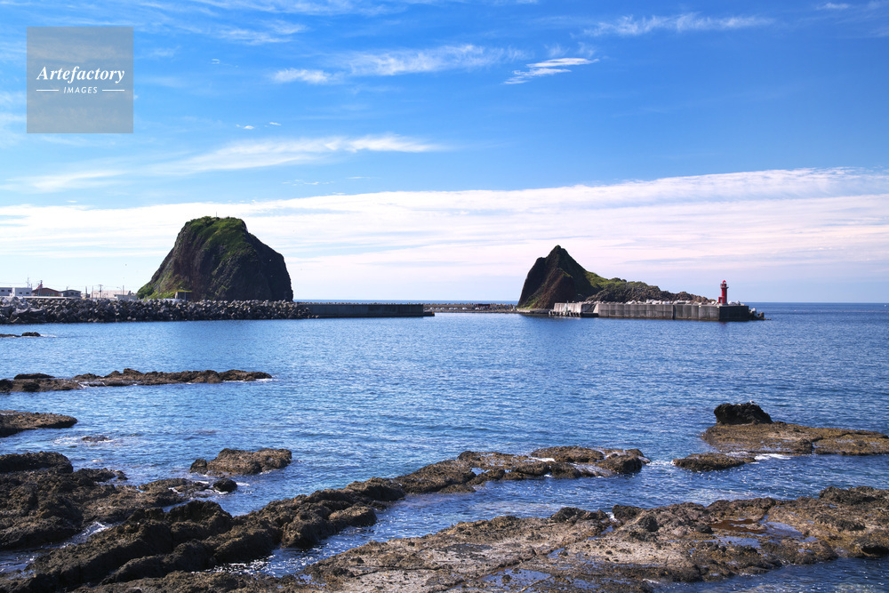 | 作品タイトル | オロンコ岩(左)と三角岩(右)とオホーツク海 | モデルリリース | なし | |