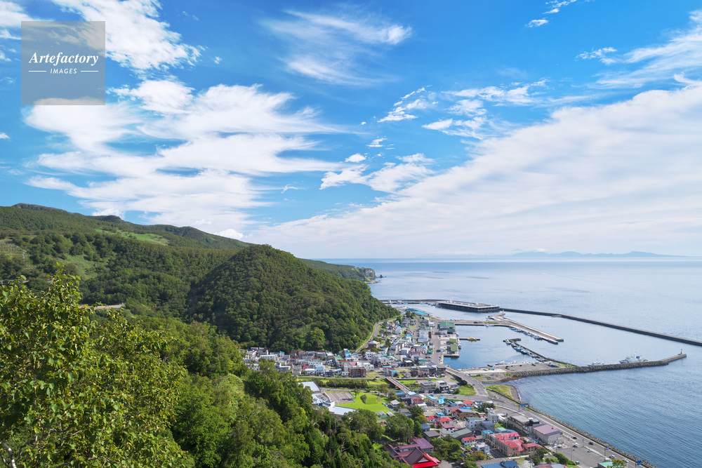 | 作品タイトル | 羅臼漁港と羅臼市街地と国後島 | モデルリリース | なし | |