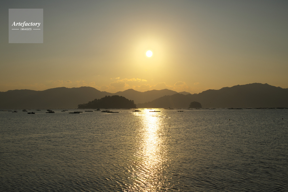 | 作品タイトル | 山田湾の日の出と養殖イカダ | モデルリリース | なし | |