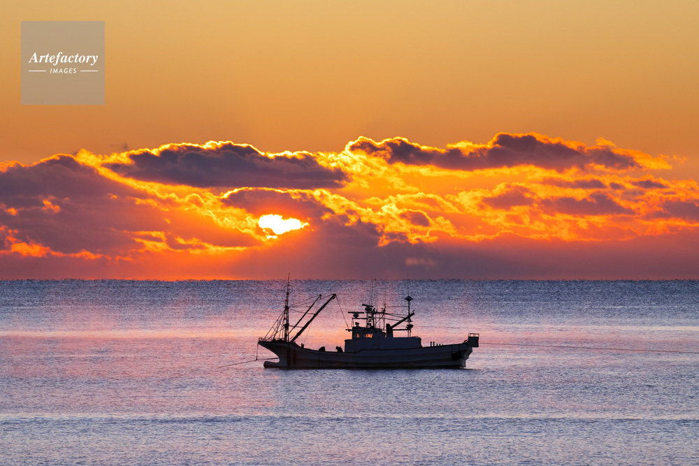| 作品タイトル | 日の出と漁船とけあらし | モデルリリース | なし | |
