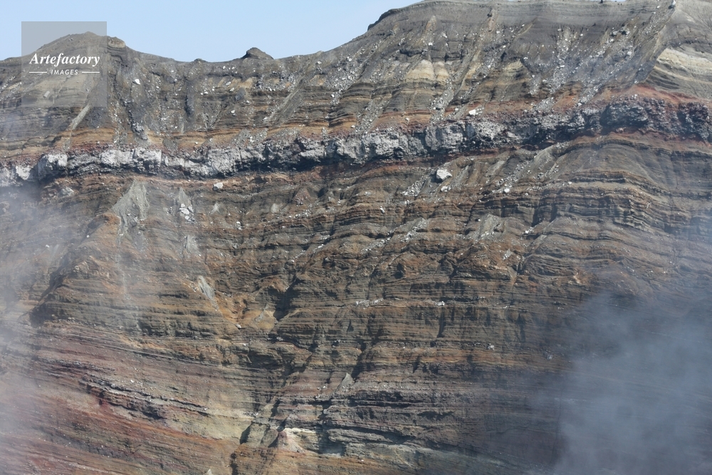 | キャプション | 火口壁で見られる地層 | 制限事項 | ||