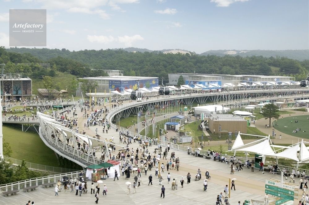 | 作品タイトル | 愛知万博、グローバル・ループ(水平回廊)とグローバル・コモン2(北・中・南アメリカ)を望む風景 | モデルリリース | なし | |