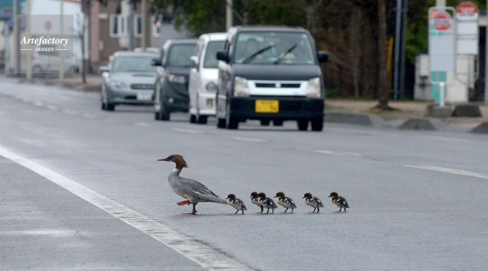 | 作品タイトル | カワアイサの親子 | モデルリリース | なし | |