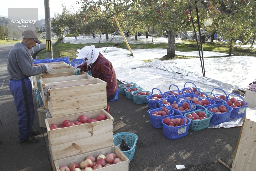| 作品タイトル | リンゴの収穫と選別、岩木山 | モデルリリース | なし | |
