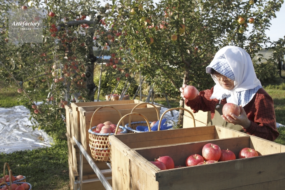| 作品タイトル | リンゴの収穫と選別、岩木山 | モデルリリース | なし | |