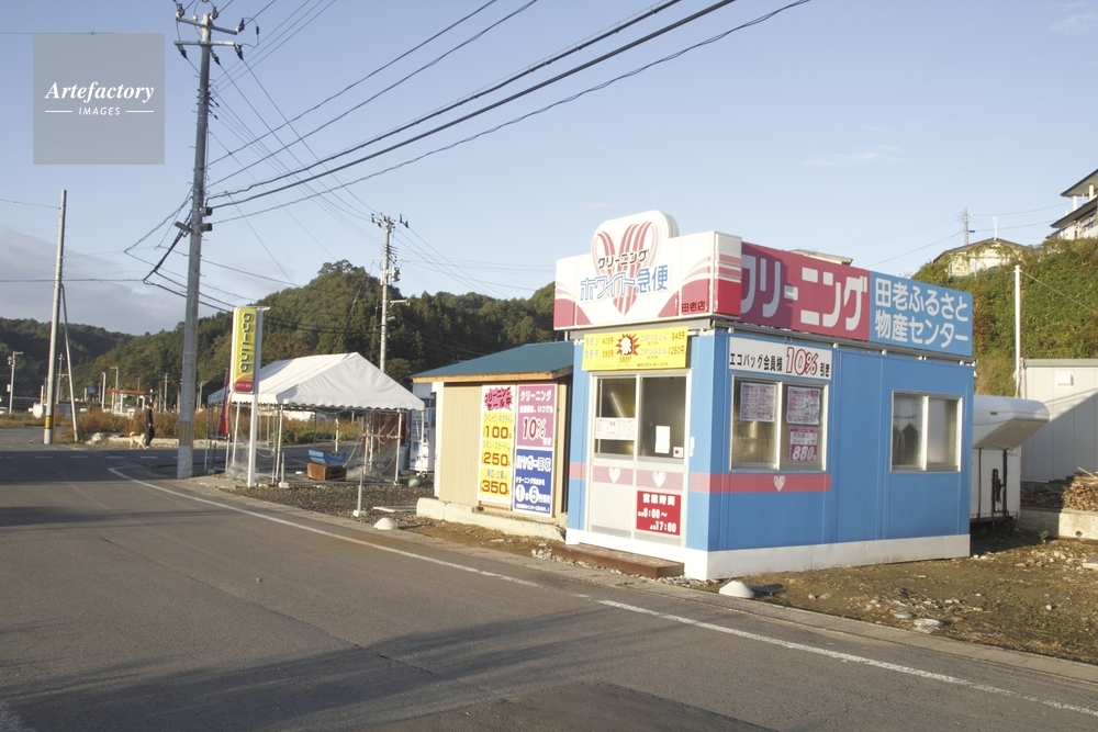 | 作品タイトル | 大津波で破壊された集落跡、プレハブの商店 | モデルリリース | なし | |