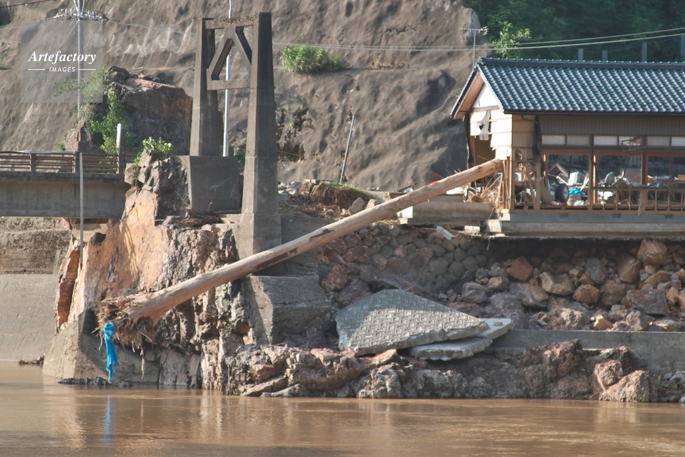 | 作品タイトル | 豪雨の被害、住宅に刺さった流木 | モデルリリース | なし | |