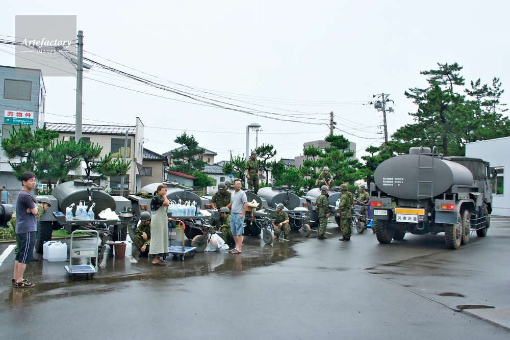 | 作品タイトル | 新潟県中越沖地震 自衛隊の災害援助活動、給水 | モデルリリース | なし | |