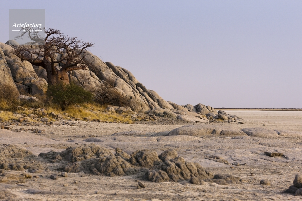 | キャプション | カラハリ砂漠 オラパ近郊 バオバブ スアパン Sua Pan クブ島 Kubu Island 朝 | 制限事項 | ||