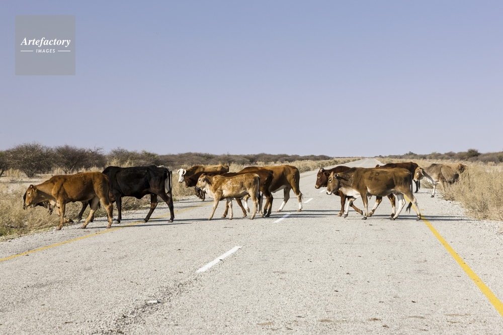 | キャプション | 道路を渡る ウシ 群れ カラハリ砂漠 レイコップス | 制限事項 | ||