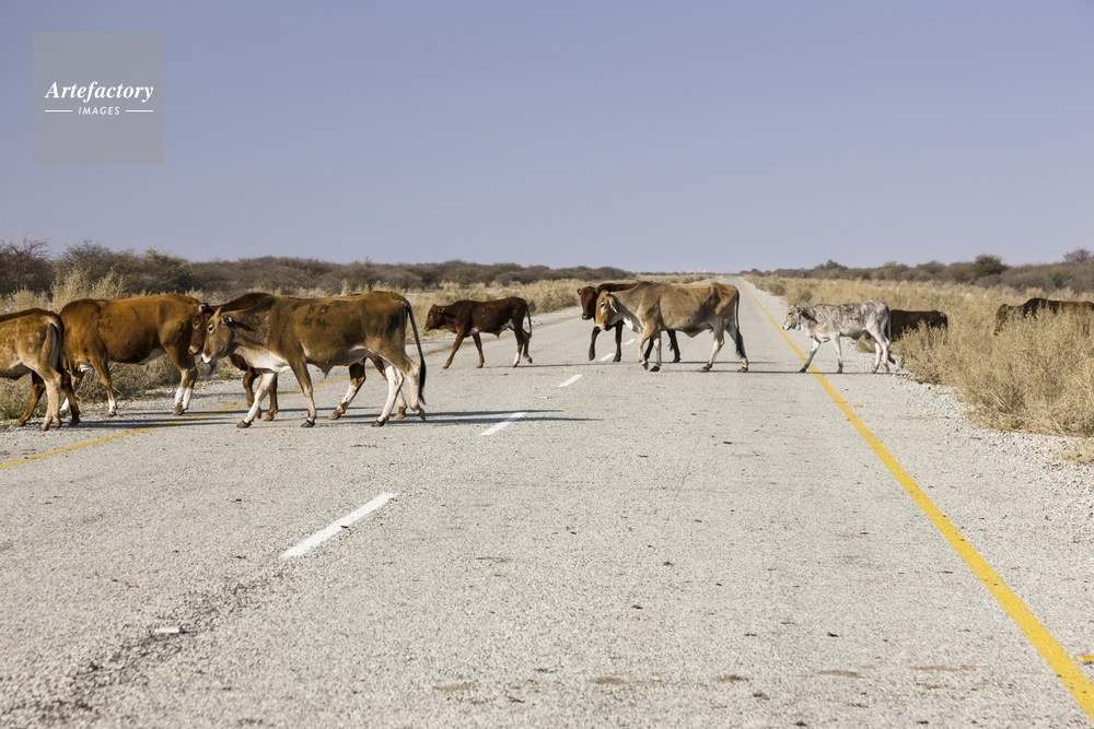 | キャプション | 道路を渡る ウシ 群れ カラハリ砂漠 レイコップス | 制限事項 | ||