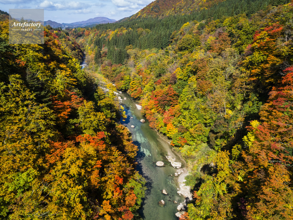 | キャプション | 皆瀬新処 小安峡 渓谷 紅葉 皆瀬川 栗駒国定公園 ドローン 空撮 | 制限事項 | ||