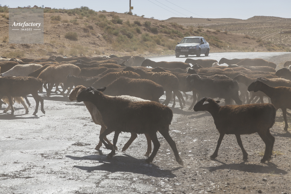 | キャプション | スルハンダリヤ州 バイスン近郊 遊牧風景 道路横断 ヤギ | 制限事項 | ||