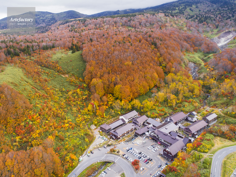 | キャプション | 青森市 荒川 酸ヶ湯温泉 紅葉 十和田八幡平国立公園 ドローン空撮 | 制限事項 | ||