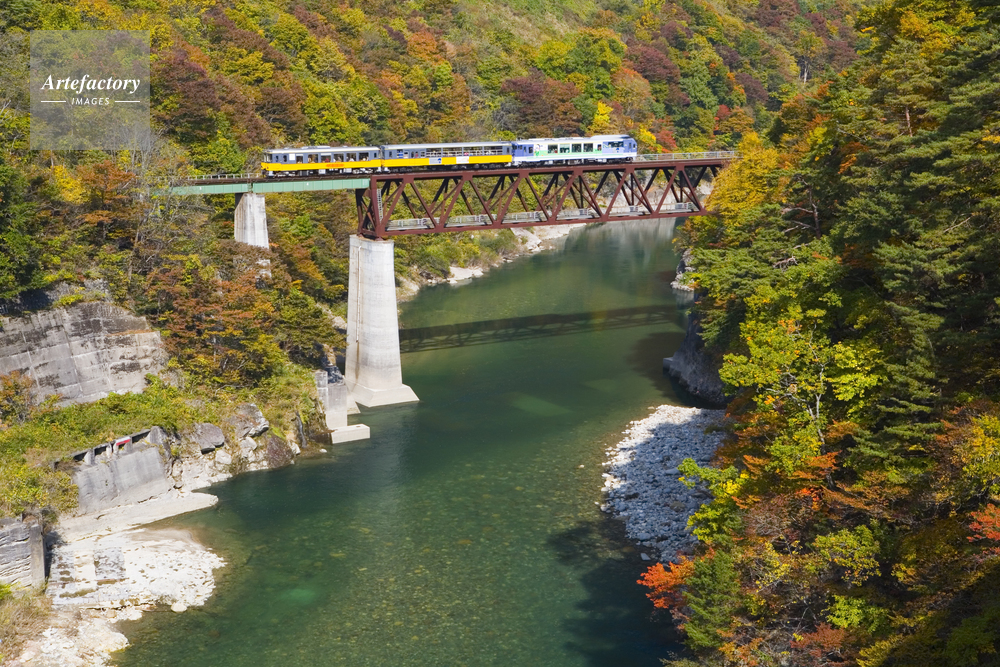 | 作品タイトル | 秋の大川と鉄橋と列車 | モデルリリース | なし | |