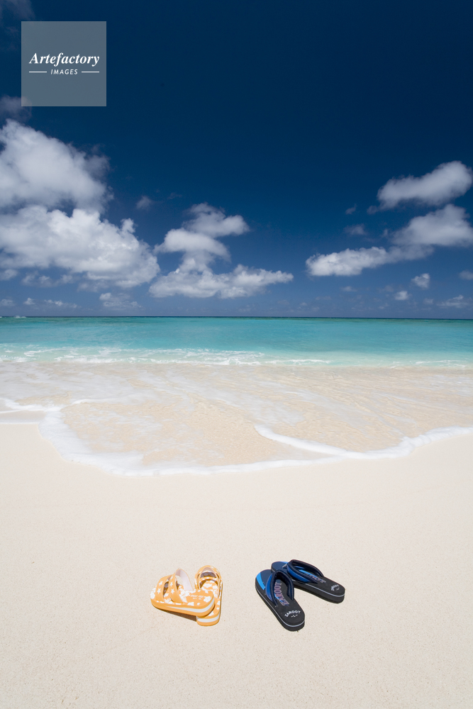 | 作品タイトル | ビーチサンダルと雲・砂浜・海・青空 | モデルリリース | なし | |