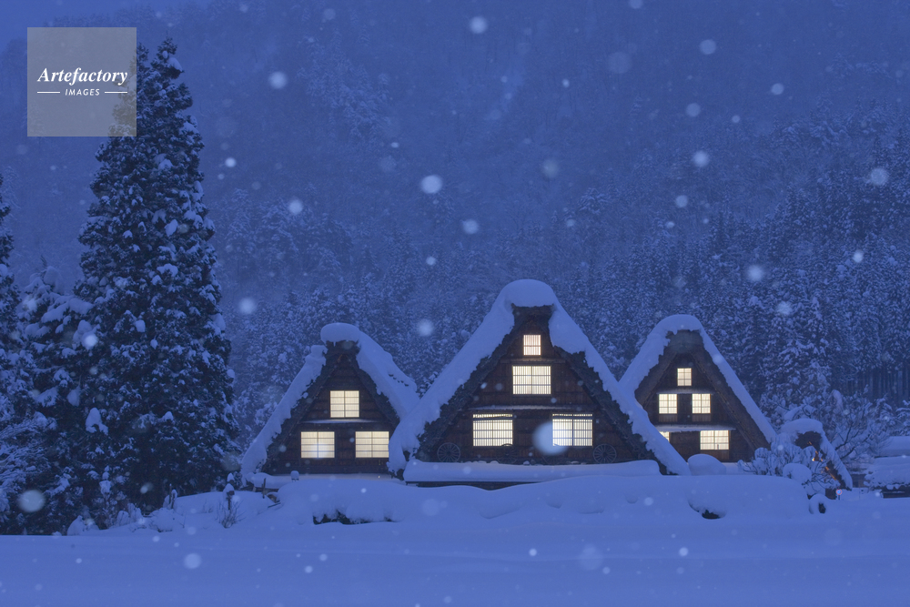 | 作品タイトル | 雪の白川郷合掌造り夕景 | モデルリリース | なし | |