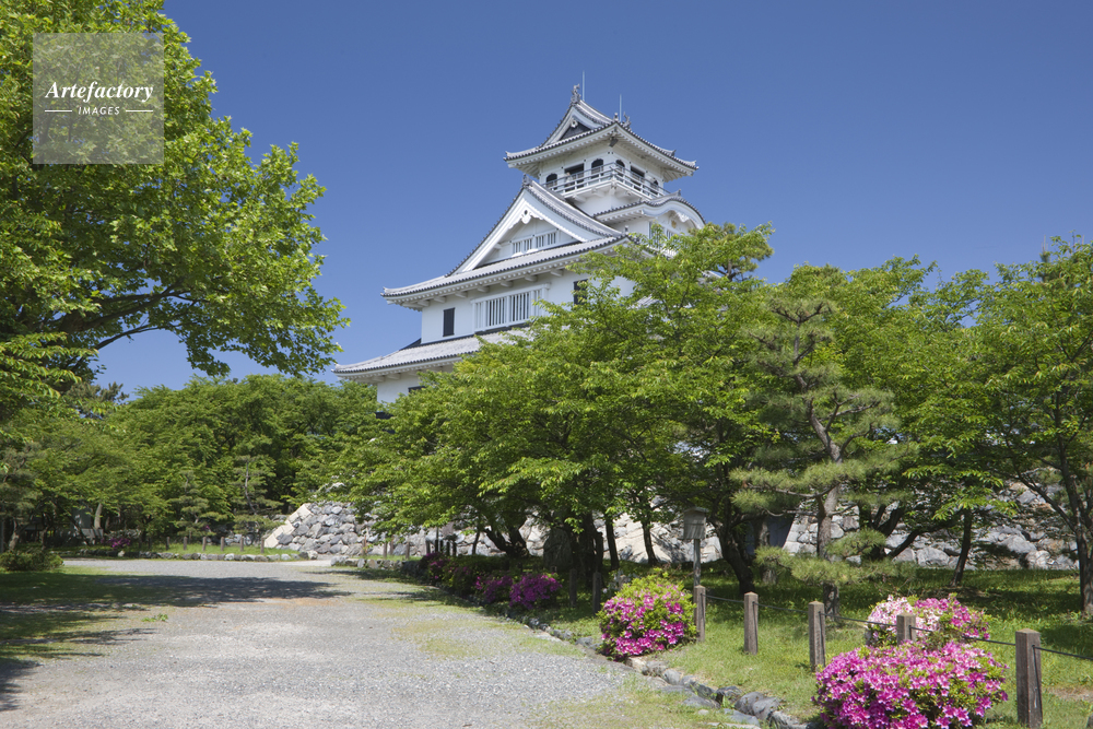 作品タイトル     長浜城の新緑ツツジ モデルリリース なし
