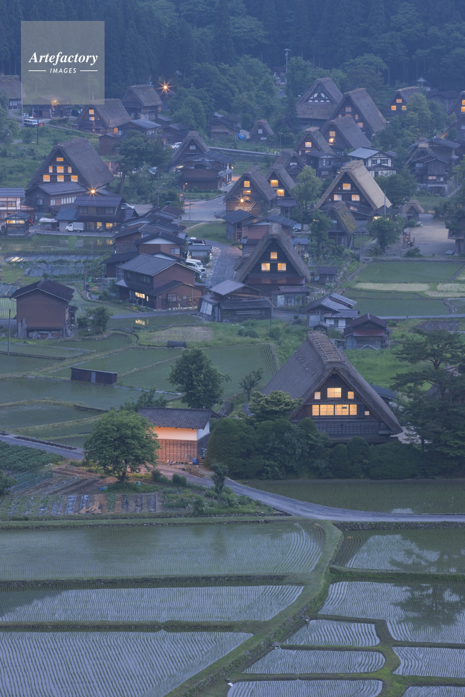 | 作品タイトル | 白川郷の夕景と水田 | モデルリリース | なし | |