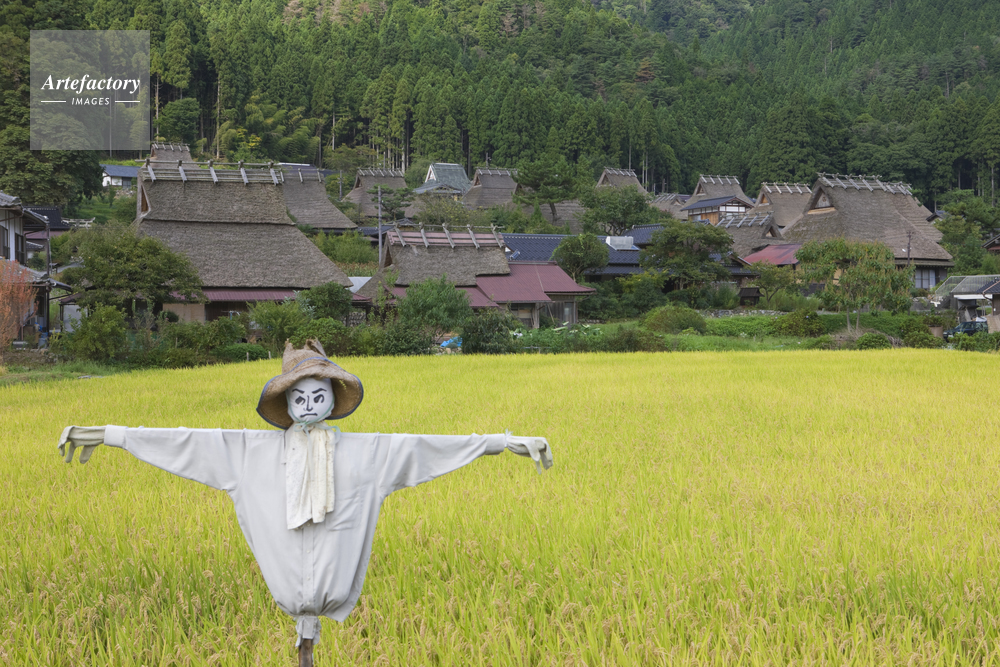 | 作品タイトル | 茅葺民家とカカシと稲 | モデルリリース | なし | |