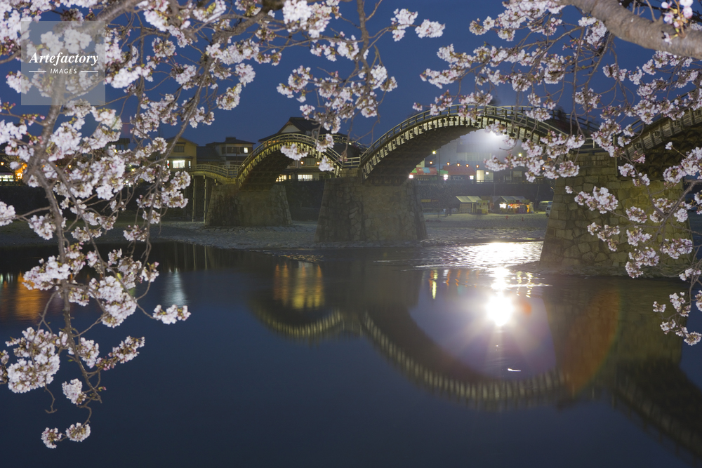 | 作品タイトル | 錦帯橋と桜と錦川の夕景のライトアップ | モデルリリース | なし | |