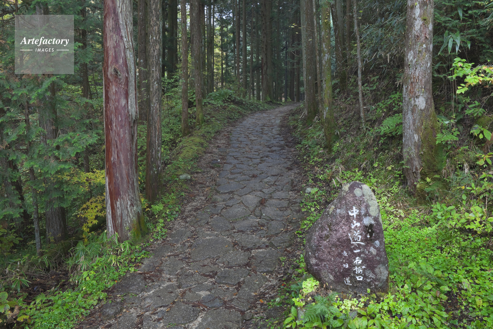 | キャプション | 中山道 一石栃口 石畳 杉木立 石碑 秋 雨 | 制限事項 | ||