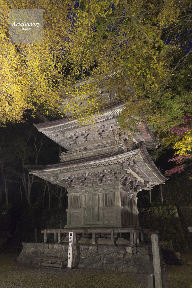 | キャプション | 紅葉 雨 夜 神社 橋 両界山 ライトアップ 三重塔 | 制限事項 | ||
