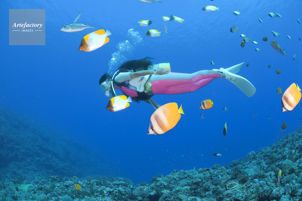 | 作品タイトル | 熱帯魚とダイバーとサンゴ | モデルリリース | なし | |