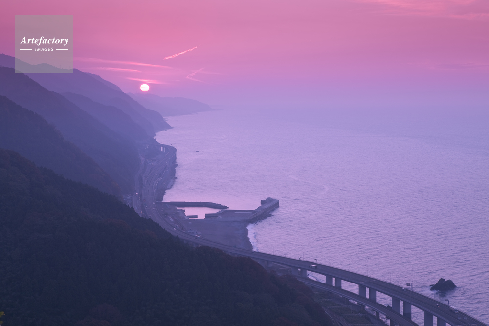| 作品タイトル | 親不知の北陸自動車道と夕日 | モデルリリース | なし | |
