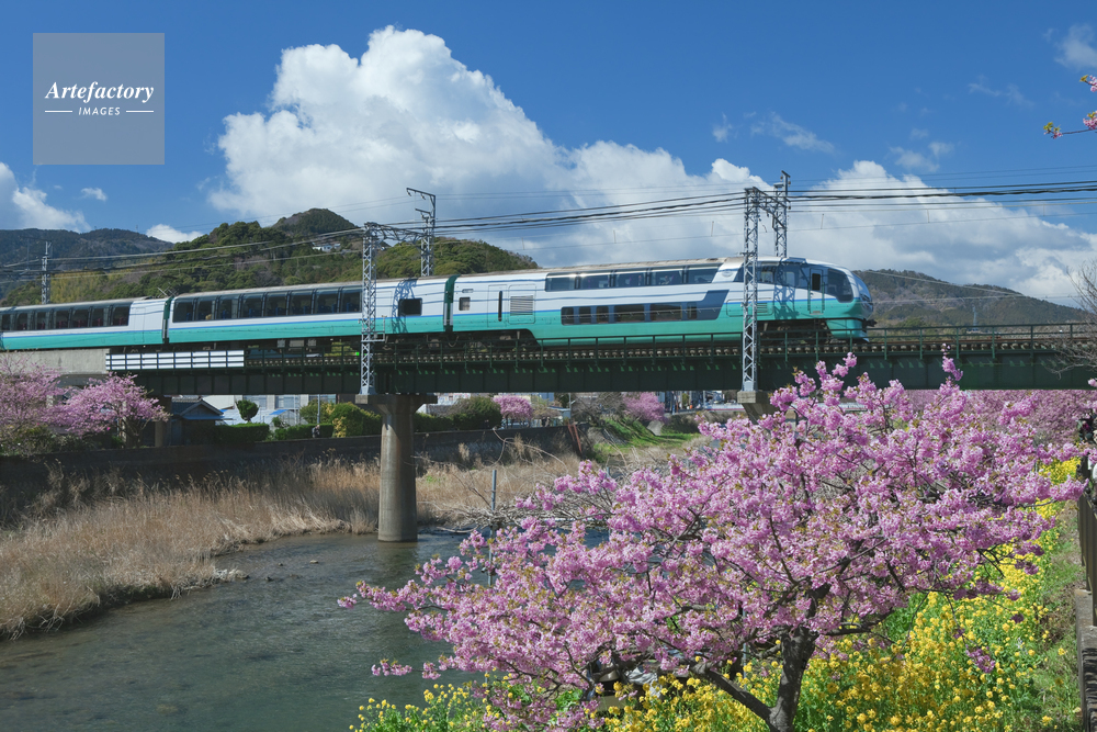 | 作品タイトル | 河津桜とスーパービュー踊り子号と河津川 | モデルリリース | なし | |