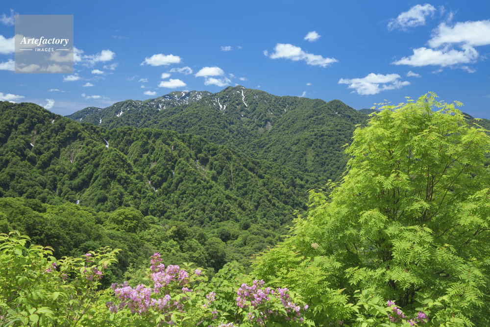 | キャプション | 世界自然遺産 天狗峠 白神ラインより撮影 ウツギの花 新緑 | 制限事項 | ||