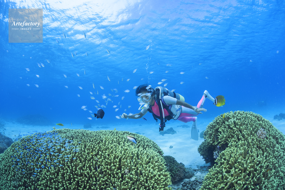 | 作品タイトル | エダサンゴとダイバーとスズメダイ | モデルリリース | あり | |