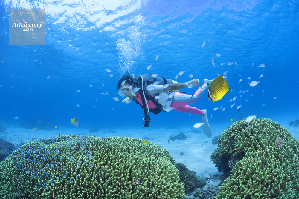 | 作品タイトル | エダサンゴとダイバーとスズメダイ | モデルリリース | あり | |