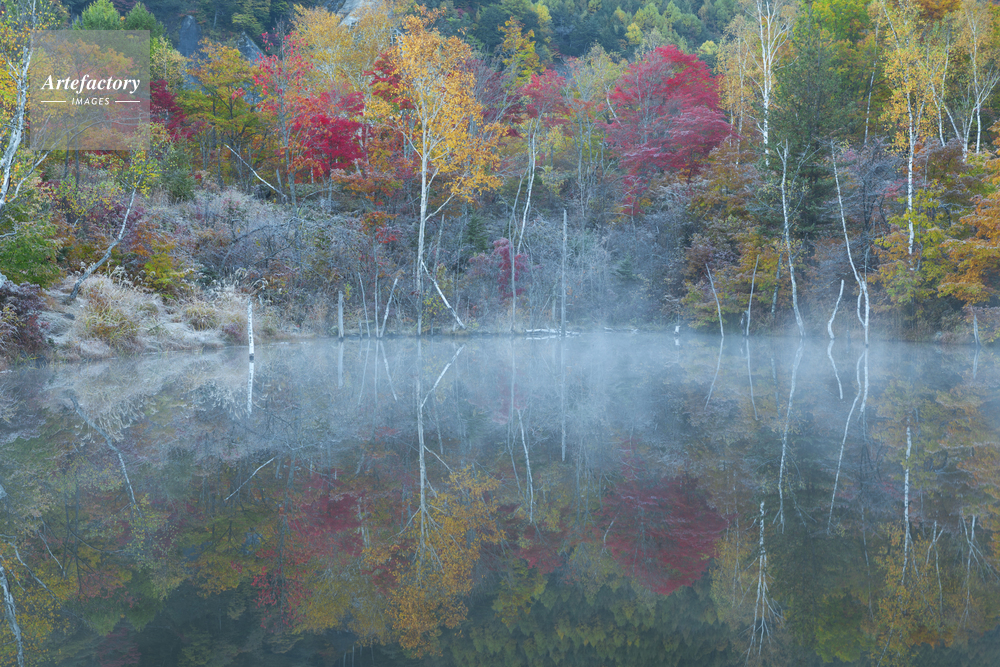 | 作品タイトル | 紅葉のまいめの池と朝霧 | モデルリリース | なし | |