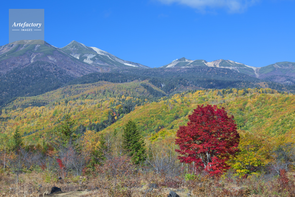 | 作品タイトル | 紅葉の一本のカエデと乗鞍岳 | モデルリリース | なし | |