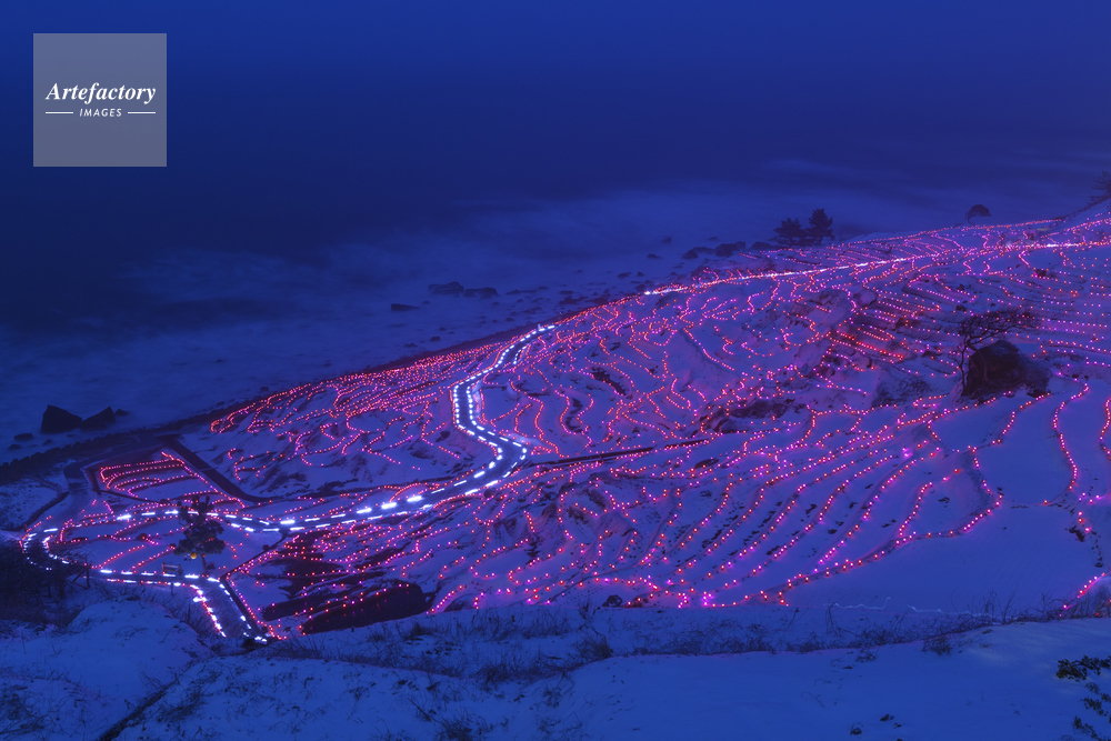 | 作品タイトル | 雪の白米千枚田あぜの万燈 | モデルリリース | なし | |